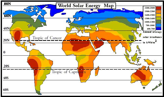 Mapa mundi energia solar