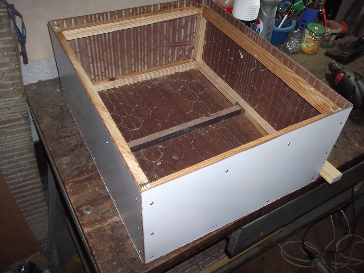 - Ferragens: rebites de pressão em alumínio, pregos niquelados, parafusos cbç francesa, porca borboleta, dobradiças banhadas de 1 e 2 polegadas, placa de alumínio (reutilizado) e raio de bicicleta (reutilizado).