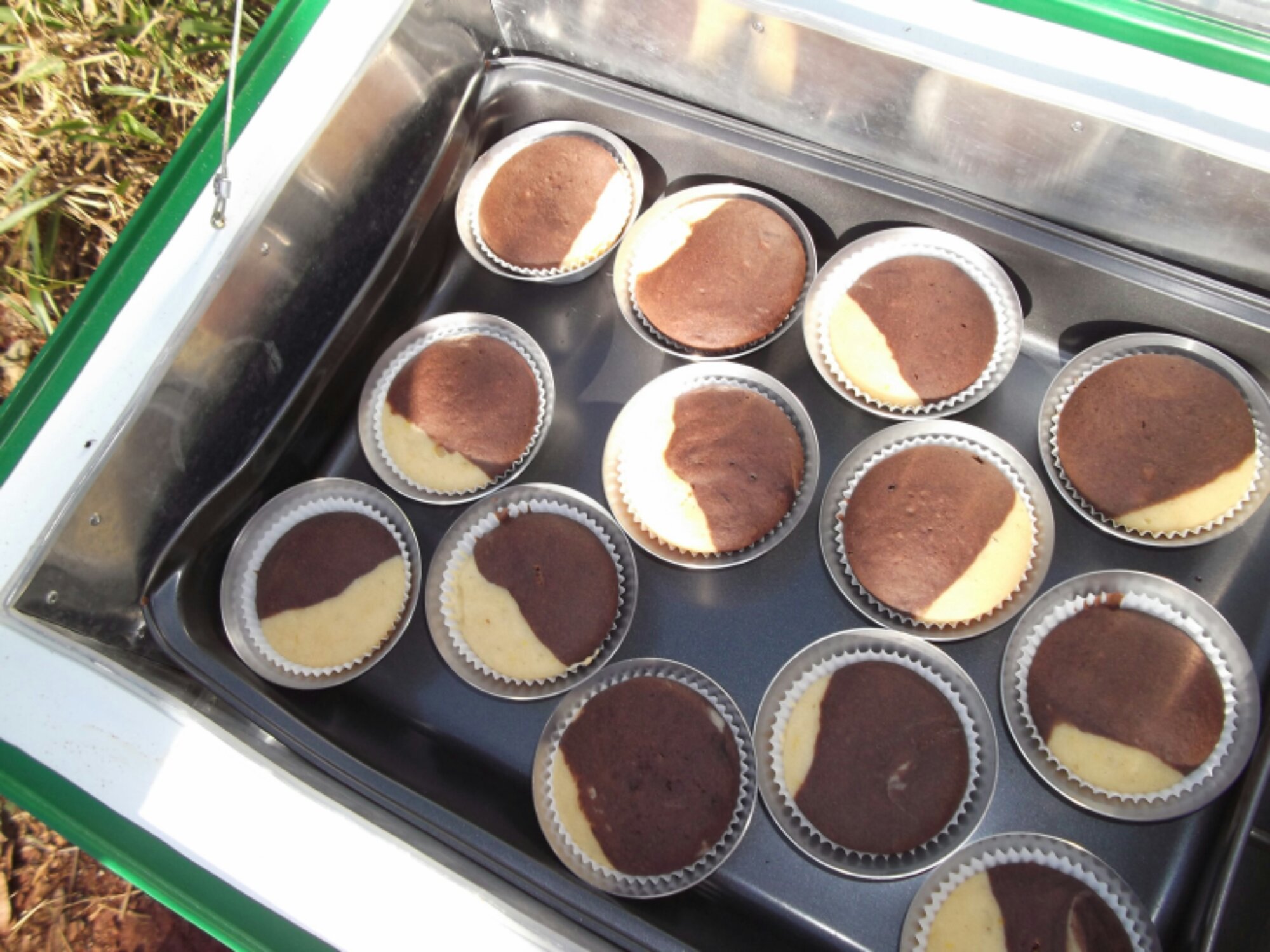 Bolinho bicolor no Forno Solar P.S.Multiuso