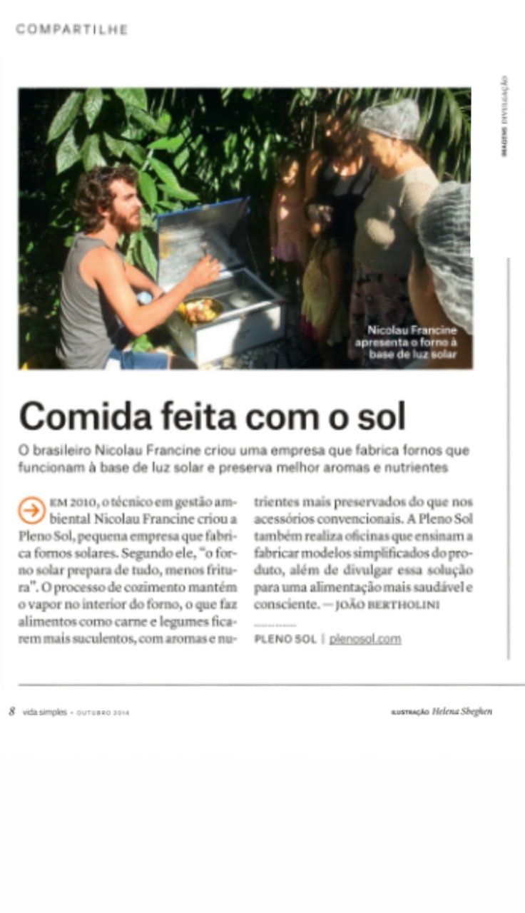 A revista “Vida Simples” publicou uma nota sobre a Pleno Sol na seção Compartilhe.