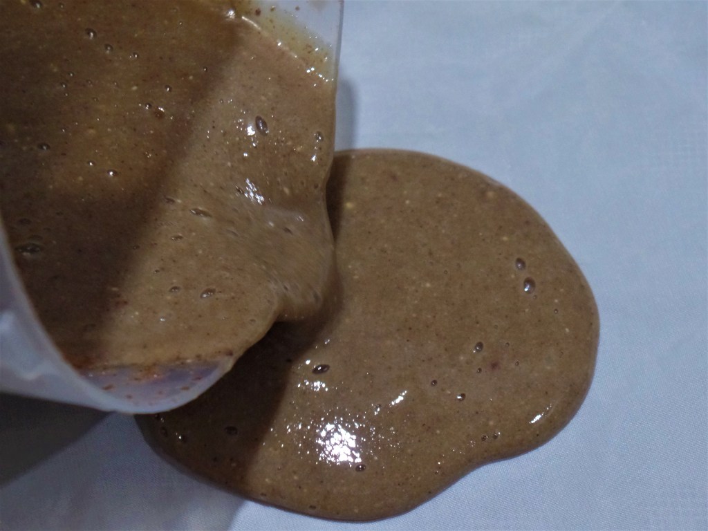 Esta “vitamina” deve ser espalhada em uma manta antiaderente, neste caso usei um pedaço de tecido de nylon mais especificamente uma manga de confeiteiro aberta.