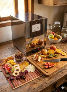 Fluxo Bilateral e Paredes Duplas: O ar percorre um caminho inteligente entre paredes duplas e difusores térmicos antes de atingir o alimento, garantindo que cada bandeja receba exatamente a mesma condição de secagem.