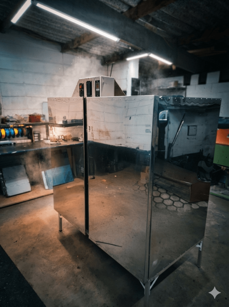 - A estrutura em aço inoxidável garante durabilidade, resistência à corrosão e facilidade de limpeza, contribuindo para a higiene do processo.